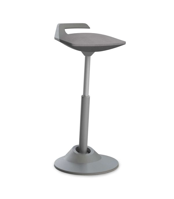 Aeris Muvman Zit-Stahulp 311. Zitting bekleed met stof Microvezel Comfort. Onderstel Grijs. Ontworpen door Aeris voor het gebruik op de meest uiteenlopende zit-/sta werkplekken. Optimaal zitten op de juiste hoogte achter uw bureau, maar net zo goed perfect staand zitten achter een hoge werktafel of zit-/statafel. Hierdoor kan iedereen, onafhankelijk van lichaamslengte en lichaamsbouw, optimaal zitten of staand zitten. Een voordeel waarvan te profiteren valt als verschillende medewerkers dezelfde muvman gebruiken! Voorzien van handige draaggreep. Traploze hoogte-instelling. Multidimensionaal bewegend gewricht voor maximale bewegingsvrijheid. Voet rondom voorzien van antislip- en antikrasrubber.