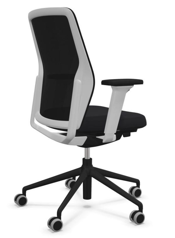 De netbespannen rugleuning (T-Mesh structuur) biedt een zacht stoffen gevoel en zorgt voor prettige ventilatie. Het gebruikte garen bestaat voornamelijk uit gerecycled polyester, waardoor het een kleine ecologische voetafdruk heeft en minder middelen vereist dan stoffen gemaakt van nieuw polyester. Het is GRS-gecertificeerd (Global Recycle Standard) en voldoet aan de OEKO-TEX® standaard 100.