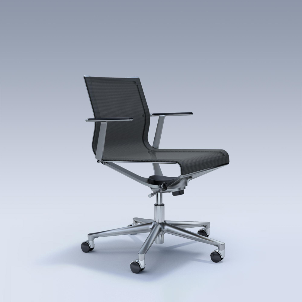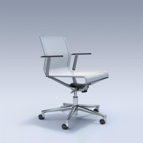 ICF bureaustoel STICK ATK 351T. Stijlvol design. Aluminium frame, gepolijst of verchroomd, naar keuze. Zitting en rugleuning bekleed met Mesh. Armsteunen voorzien van kunststof opdekjes in zwart. Pneumatische hoogteverstelling met een verstelbereik van 10 cm.