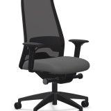 Interstuhl EVERYis1 model EV217. Bureaustoel met zwart frame; hoge rugleuning met netbespanning, zitting bekleed met stof ERA. De EVERYis1 bureaustoel is uitgerust met een synchroon-mechanisme, voor de verstelling van de zitting in combinatie met de rugleuning. Dit mechanisme heeft een gewichtsregeling in meerdere stappen, waarmee u de tegendruk afstemt op uw lichaamsgewicht.