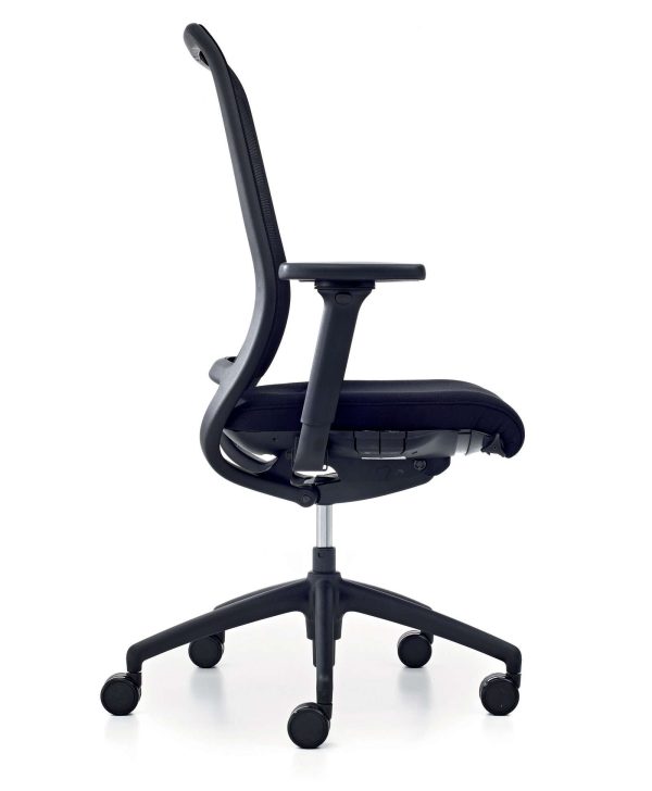 Of gebruikers nou zwaar, licht, lang of kort zijn, HERO past zich door het unieke Autofit-synchroon-mechanisme automatisch aan de gebruiker aan. Deze Interstuhl techniek is onzichtbaar verwerkt in de bureaustoel, waardoor Hero een slank en atletisch design heeft. Iedereen tussen de 45 en 120 kilo kan goed en comfortabel zitten op deze held. Uitgevoerd met netbespannen rugleuning. De rugleuning kan optioneel worden voorzien van een verstelbare lendensteun. Deze verstelbare lendensteun draagt bij tot een correcte zithouding en helpt rugklachten voorkomen. De zitdiepte is instelbaar door middel van een schuifzitting en maakt de bureaustoel geschikt voor langere gebruikers. 4D-armsteunen zijn in hoogte, breedte en diepte verstelbaar én zwenkbaar. De goede ondersteuning van deze armsteunen helpen schouderklachten en nekklachten te voorkomen. Frame zwart. Kunststof kruisvoet zwart. 10 jaar Interstuhl® garantie.