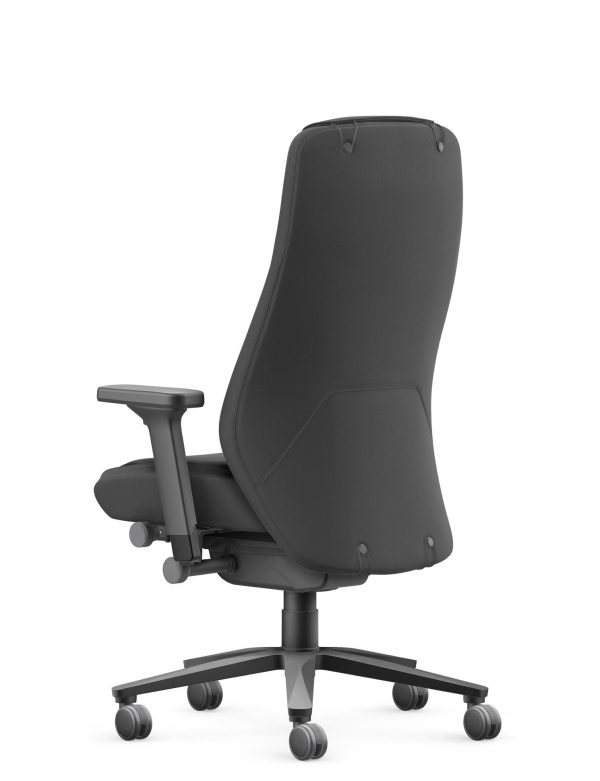 Rugleuning gestoffeerd met 55 mm schuim, bekleed met Climatex® Ultra 8033 zwart; synthetisch leer aan de zijkanten. Achterkant en zijkanten van de rugleuning in stoffen bekleding.