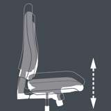 De naam zegt het al: met deze basisfunctie past u de zithoogte aan, aan de lengte van uw onderbenen. Iedere bureaustoel is in hoogte verstelbaar. De hendel waarmee u dit bedient, zit rechtsonder de zitting van de stoel.