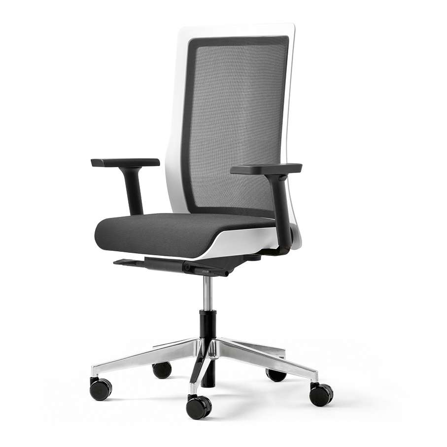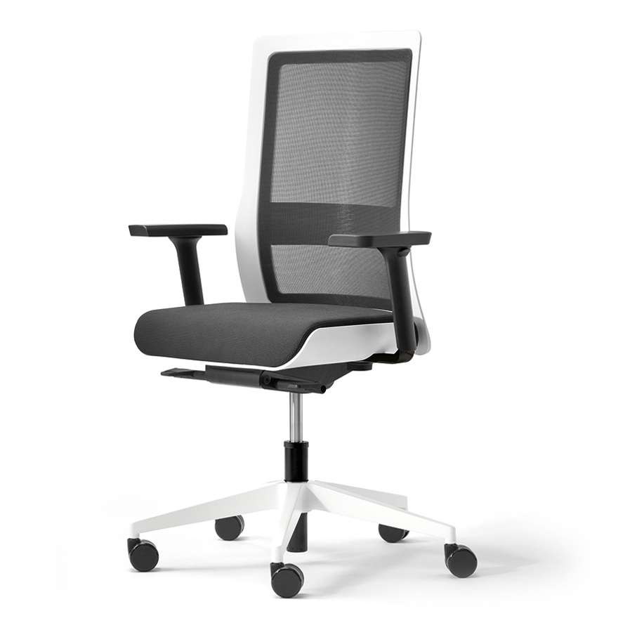 reddot design award winner. Design bureaustoel POI combineert design en esthetiek in een economisch aantrekkelijk model. Transparant wit frame, bespannen met zwart netweefsel.