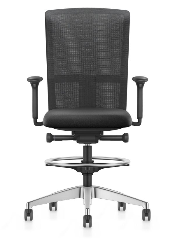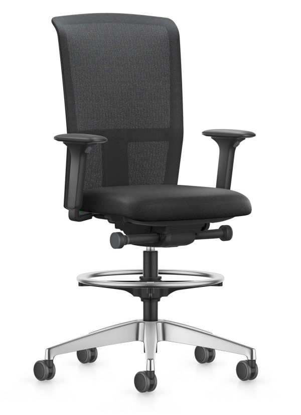 Se7en Pro LX002 baliestoel. Representatieve baliestoel met ergonomische verstelmogelijkheden. De goed verstelbare rugleuning, armsteunen en schuifzitting maken deze baliestoel geschikt voor gebruik door meerdere medewerkers.