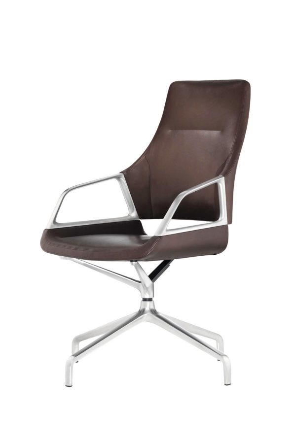 De conferentiefauteuil Graph van Wilkhahn is ontworpen voor hoogwaardige inrichtingen. Zitting, rug en armleuningen geven het gevoel van een vloeiende, homogene vormgeving, die doorbroken is en daardoor licht en elegant lijkt. Zo opvallend als de vormgeving is, is des te meer ook het driedimensionale zitcomfort. Deze berust op de complexe stoffering van zitting en rug en op een verbluffende constructie: Vooraan rust de zitting op de Y-vormige drager, achteraan wordt hij ondersteund door een centrale bladveer. Arbeidsintensief genaaide, hoogwaardige stofferingen, filigrane armleuningen, de gemodelleerde drager, de draaibare zuil en kruisvoet van verchroomd of gepolijst aluminium benadrukken nog extra deze hoogwaardigheid. Het voetkruis is voorzien van zwarte universele glijders van kunststof. Ook leverbaar met universele zwenkwielen voor harde vloeren en tapijt.