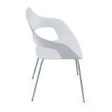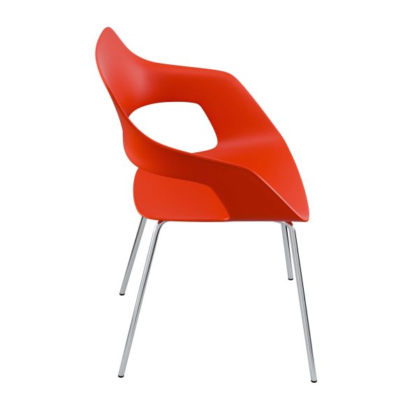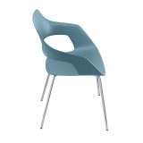 Specificaties 4-Poots onderstel van stalen buis, verchroomd, stapelbaar. Zitschaal gemaakt van polypropyleen.