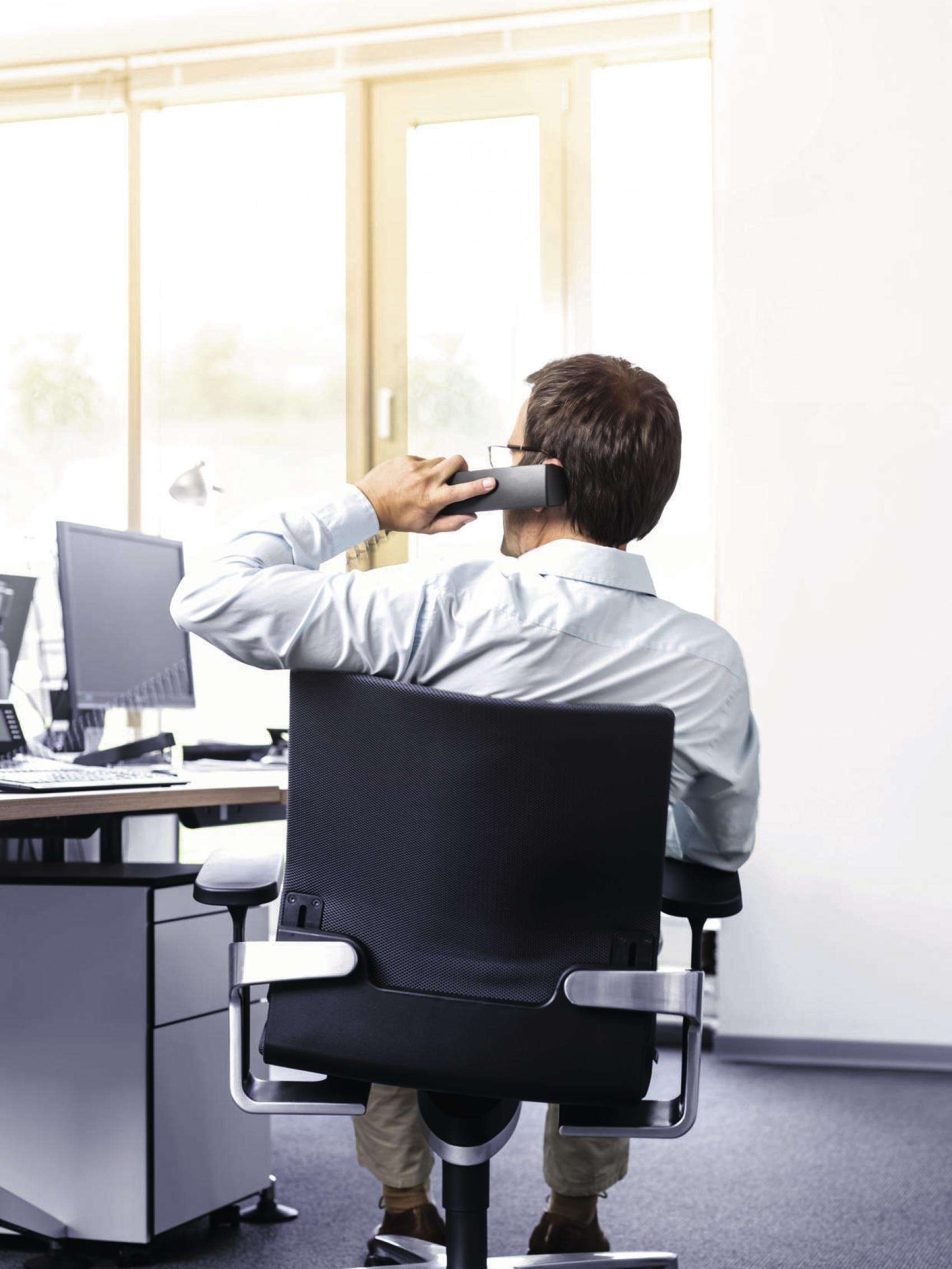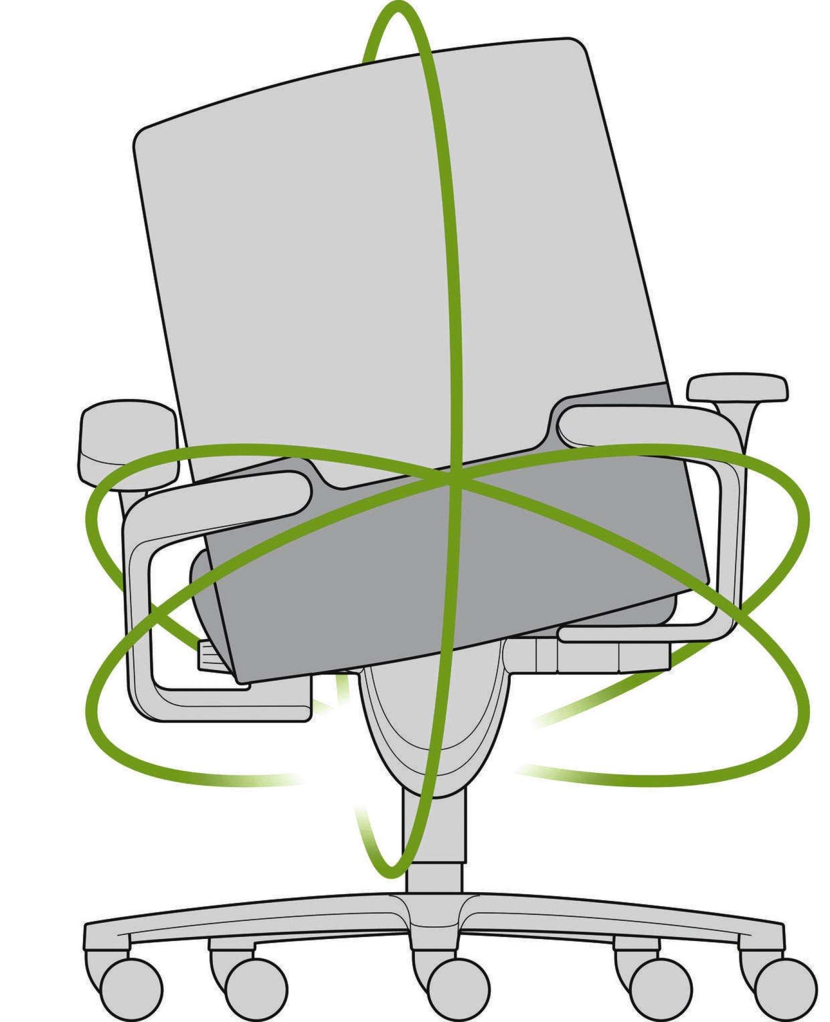 Zitting en rugsysteem Bureaustoelen met Trimension® techniek, een synchrone, driedimensionaal ondersteunende kinematica, die “bewegend zitten” stimuleert. De onderling goed afgestemde combinatie van mechaniek, zitting en rugleuning past zich automatisch aan elke beweging en zithouding van de gebruiker aan. De ondersteunende tegendruk in elke bewegingsrichting kan bij een gewicht van 45-120 kg snel (max. 4,5 slagen) ingesteld worden.